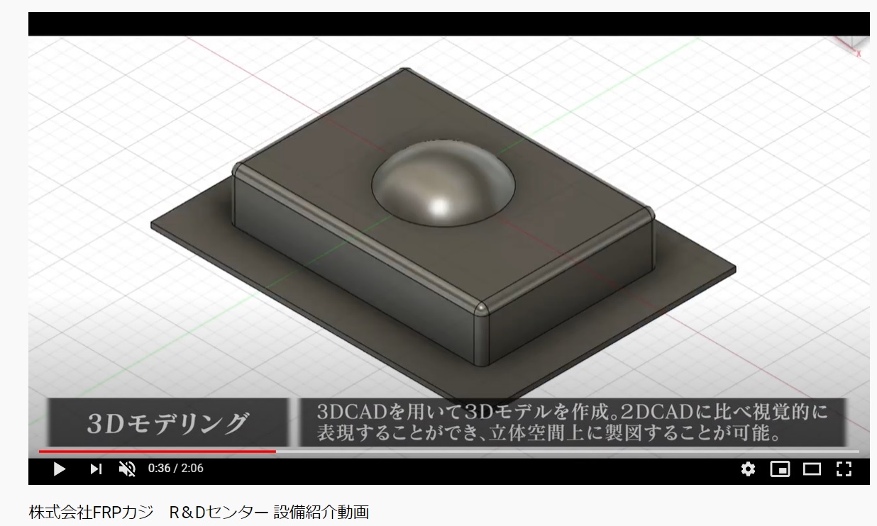 当社R&Dセンタ-設備紹介動画公開 2021 7/20 お知らせ 新着記事 2020年11月19日2021年7月20日 当社R&Dセンタ-にて行う技術相談・技術評価受託事業に必要な設備の紹介動画です。 3Dモデル製作から始まり各種寸法検査を経て非破壊検査までの流れを分かりやすく まとめた動画となっています。 是非とも一度ご覧ください。 ※当社エンジニアによるセミナー動画はこちら。 ※自社技術紹介動画はこちら。 お知らせ 新着記事 #FRP技術紹介 #技術相談 #frp よかったらシェアしてね! URLをコピーしました! URLをコピーしました! FRP特殊塗装工法®に関するページ開設のお知らせ JEC COMPOSITES LANDSCAPE‐ 4th editionに掲載 この記事を書いた人 FRPカジ 関連記事 FRPのクラック・膨れ・層間はく離:止まって見えても進行することがある 2026年3月14日 FRPの白化・チョーキングは危険サイン?相談前に見る3点 2026年2月13日 FRP劣化診断のご相談について(お問い合わせフォーム/お電話の受付案内) 2026年2月12日 2026年 年頭の挨拶と目標 2026年1月1日 FRPカジ公式YouTubeでショート動画配信スタート! 2025年12月16日 【新連載】若手が学ぶ!FRPカジの技術レポート徹底解説(11月スタート) 2025年10月31日 微細ガラス繊維に要注意、身近な“FRP”でも安全第一 2025年9月29日 強アルカリ対応スクラバーに改修 2025年8月26日