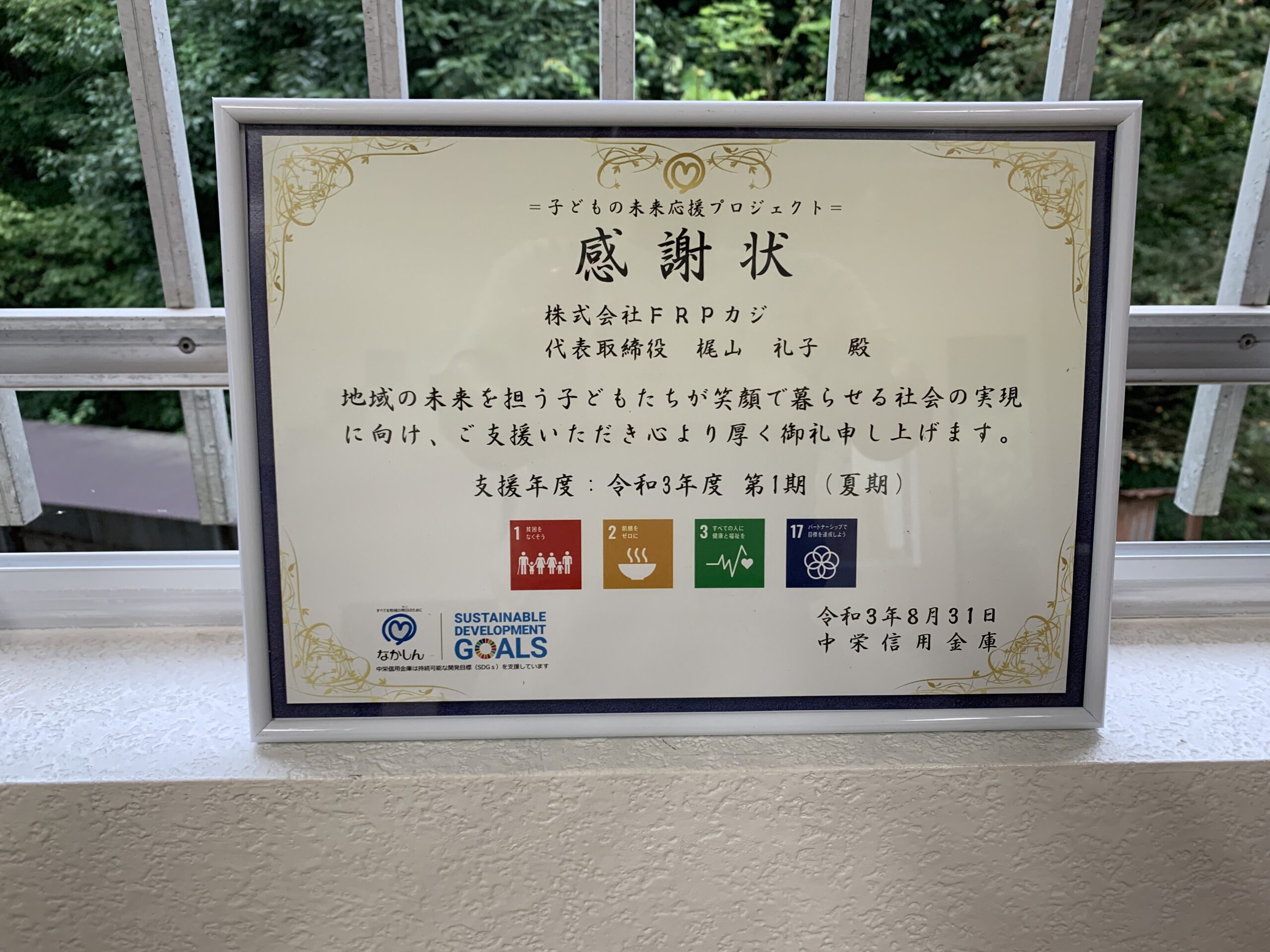 子供の未来応援プロジェクト賛同により感謝状をいただきました 2021 10/14 お知らせ 新着記事 2021年9月1日2021年10月14日 SDGs達成に貢献している中栄信用金庫様の「子供の未来応援プロジェクト」に賛同させていただきましたところ、 感謝状をいただきました。 当社R&Dセンターも児童の通学路にあるので「こども110番」に賛同させていただいていたり 今後も未来を担う子供たちのサポートができればと考えます。 お知らせ 新着記事 #frp #こども食堂 #子供の未来応援プロジェクト #感謝状 よかったらシェアしてね! URLをコピーしました! URLをコピーしました! 新技術レポートを公開いたしました~技術資料 ENG-REPORT-013 新技術レポートを公開いたしました~技術資料 ENG-REPORT-014 この記事を書いた人 FRPカジ 関連記事 FRPのクラック・膨れ・層間はく離:止まって見えても進行することがある 2026年3月14日 FRPの白化・チョーキングは危険サイン?相談前に見る3点 2026年2月13日 FRP劣化診断のご相談について(お問い合わせフォーム/お電話の受付案内) 2026年2月12日 2026年 年頭の挨拶と目標 2026年1月1日 FRPカジ公式YouTubeでショート動画配信スタート! 2025年12月16日 【新連載】若手が学ぶ!FRPカジの技術レポート徹底解説(11月スタート) 2025年10月31日 微細ガラス繊維に要注意、身近な“FRP”でも安全第一 2025年9月29日 強アルカリ対応スクラバーに改修 2025年8月26日