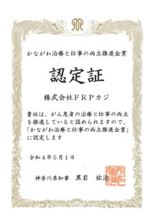 「かながわ治療と仕事の両立推進企業(プラチナ)」に認定されました