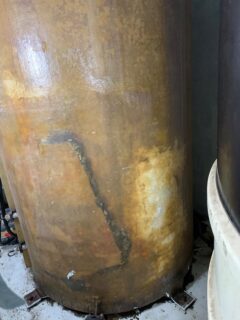 某化学薬品工場にて2022年1月に施工した塩酸貯槽と同様に今回は苛性ソーダ貯槽の改修工事を行いました。 当該槽は塩酸貯槽と同様に30年以上経過していますが、地下に設置されているため紫外線による外面劣化は少ない状況です。 しかし、内面は塩酸貯槽同様...