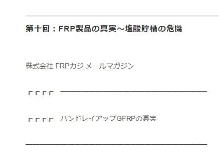 メルマガ最新号配信:FRP製品の真実~塩酸貯槽の危機
