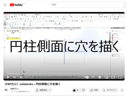 You Tubeチャンネル solidworks-円柱側面に穴を描く