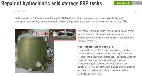 当社のFRP製塩酸貯蔵タンク改修/補修事業がJEC Groupのリリースに掲載されました